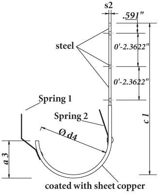41. Heavy hanger, copper coated, halfround with 2 springs