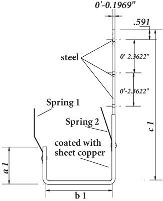 42. Heavy hanger, copper coated, rectangular with 2 springs